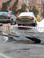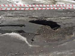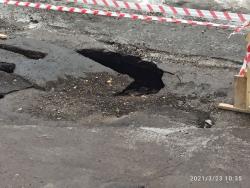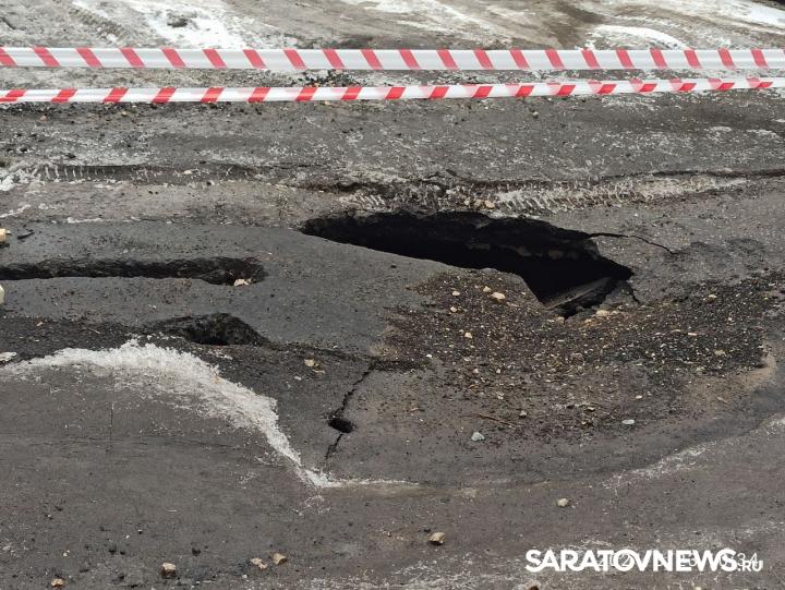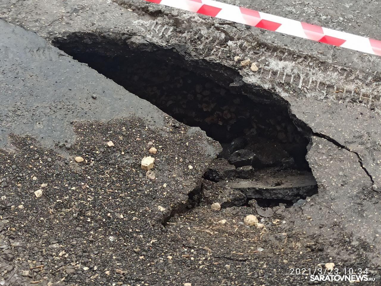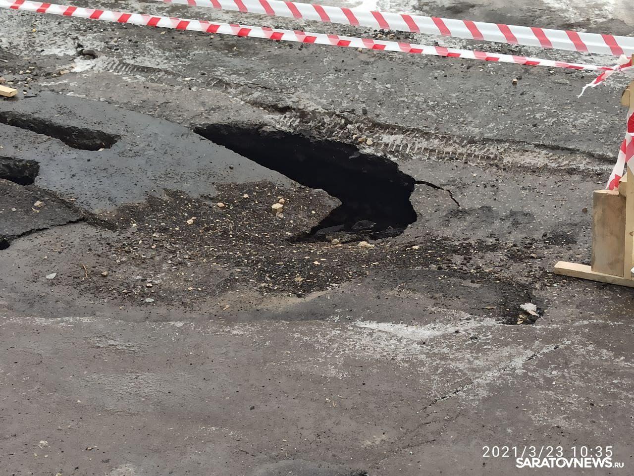 У дома № 21/29 на улице Наумовской в Кировском районе Саратова недавно велись ремонтные работы. Жители рассказывают, что здесь бил фонтан холодной воды. Рабочие остановили поток, закопали яму, где шли работы, положили асфальт. Но вот спустя время, на месте ремонтных работ образовался разлом.
