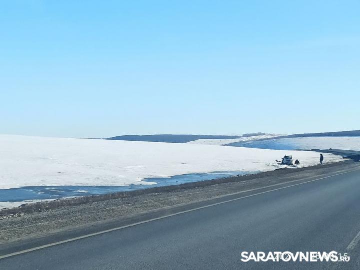 Сегодня, 26 марта, на трассе Саратов-Вольск, примерно в 50-60 километрах от Саратова, произошло ДТП. Водитель Renault Duster не справился с управлением и съехал с проезжей части в заснеженный кювет.