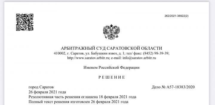 Вступило в силу решение Арбитражного суда Саратовской области, которое обязало ТСН «Ломоносовъ» г. Энгельс оплатить задолженность за услуги регионального оператора Саратовской области – филиала АО «Управление отходами» в размере свыше 357 тыс. рублей.
