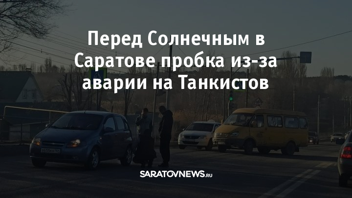 Сегодня утром, 13 апреля, перед поселком Солнечный в Саратове собралась пробка из-за ДТП. Chevrolet ехал по 1-му проезду Танкистов, с улицы Черниговской поворачивала «Газель». Машины столкнулись на перекрестке.