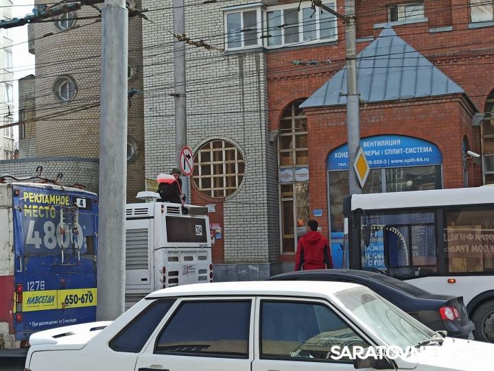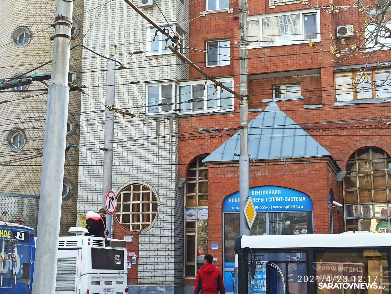Сегодня, 23 апреля, в Волжском районе Саратова произошло ДТП. Напротив Волжского дома быта встали два автобуса на жесткой сцепке. Один автобус вез другой – неисправный, но в итоге заглох сам.