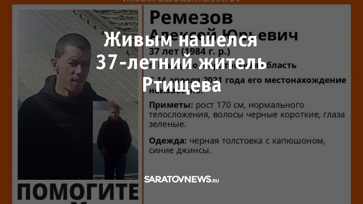 Домой благополучно вернулся 37-летний Алексей Ремезов. Напомним, его искали с 14 апреля 2021 год, а ориентировка была опубликована 22 апреля.