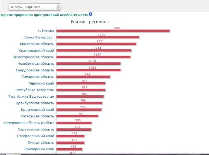 На сегодняшний день, 28 апреля, Генпрокуратура РФ опубликовала отчет по преступности в России в первом квартале 2021 года. Без учета Москвы и Санкт-Петербурга, Саратовская область оказалась в ТОП-15 страны по количеству зарегистрированных особо тяжких преступлений.