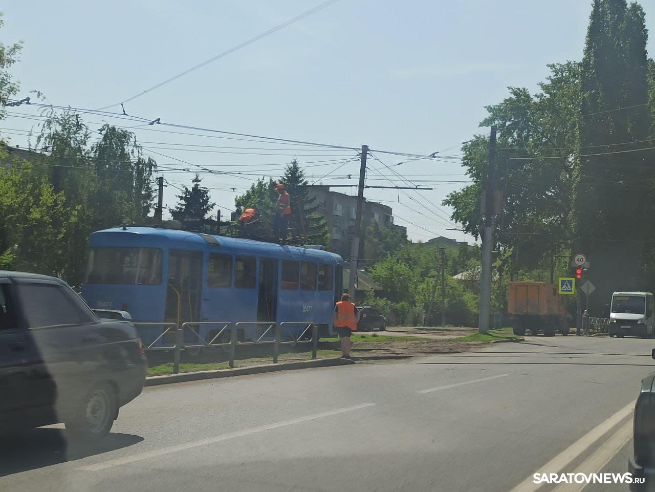 Сегодня, 15 мая, на улице Политехнической в Октябрьском районе Саратова встали трамваи № 9 и 10. Движение прервано у остановки «Стрелка» в сторону 1-го Просяного проезда и Октябрьского поселка. Об этом рассказывают очевидцы.