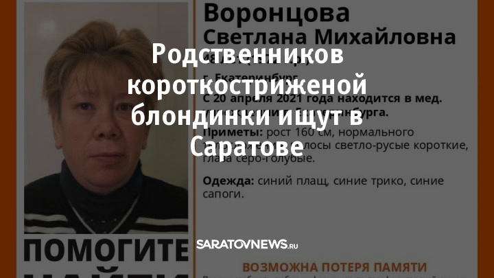 Вчера, 17 мая, волонтеры «Лиза Алерт» обратились к жителям Саратовской области с просьбой помочь в поиске родственников женщины, потерявшей память. Сообщение размещено в их группе в социальной сети.