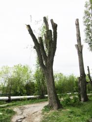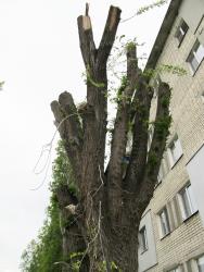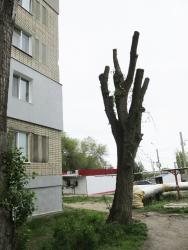 «Нам сказали: мол, деревья обрежем, не будут нависать ветви над детской площадкой, а на следующий год они снова зазеленеют, - рассказывает местная жительница Ольга Тихонова. – Но наши тополя – молодые, и никакие старые ветки на площадку не падали. Да, есть вязы более старые, но они находятся ближе к рынку Комсомольский, вдалеке от тротуаров, за домами. В итоге получилось так, что этой весной обрубленные деревья стоят голые, появились тонкие зеленые веточки на стволах, но на этом – всё. Соседи говорят – лучше бы сразу уничтожили до пней, чем так издеваться над зелеными насаждениями».