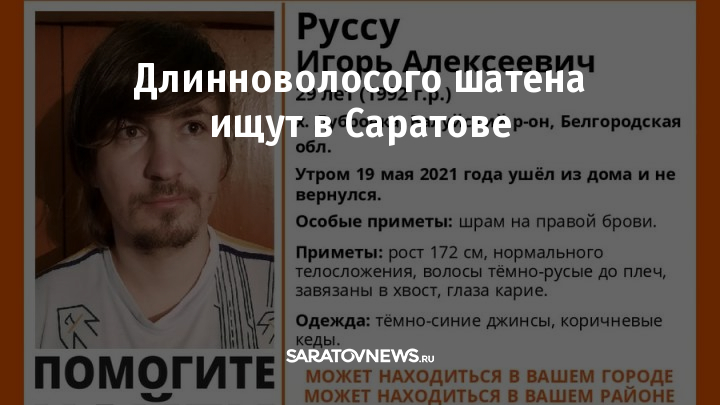 Сегодня, 24 мая, волонтеры саратовского отделения «Лиза Алерт» обратились к жителям региона с просьбой поучаствовать в поисках пропавшего жителя Белгородской области.
