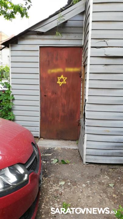 Сегодня ночью в Волжском районе Саратова совершен акт вандализма. Во дворе одного из домов по улице Первомайской между Соборной и Некрасова появилась антисемитская надпись. Надпись выполнена масляной краской желтого цвета на входной двери технической постройки.