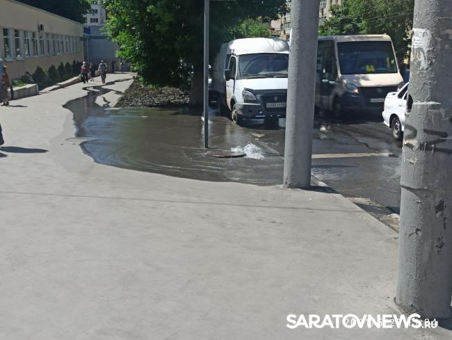 Вода хлещет у детской поликлиники на Чапаева в Саратове | ВИДЕО
