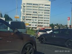 Они рассказывают, что в этом месте и так обычно оживленное движение, а сейчас транспорт вообще встал из-за перекрытых полос. По словам очевидцев, пострадавших нет, участники аварии ждут приезда службы ГИБДД.