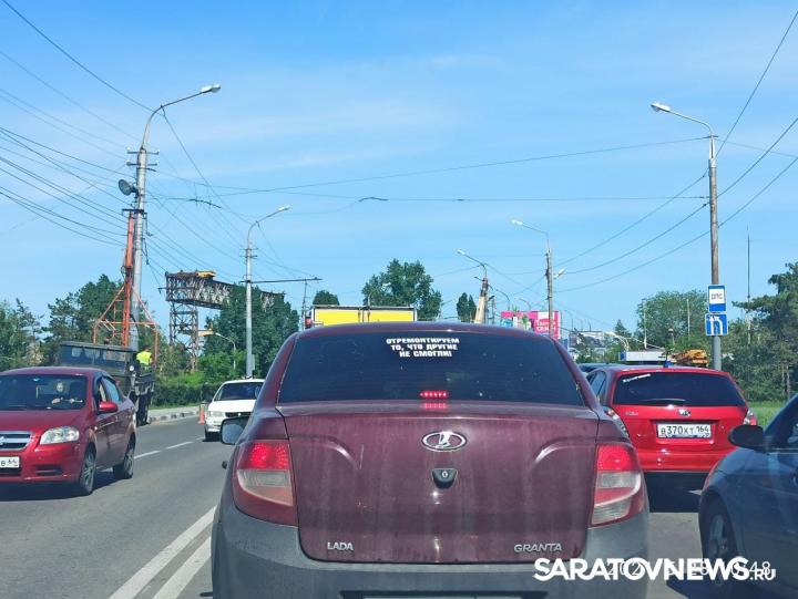 Затруднения с движением начались со стороны Энгельса. Въезд на мост в сторону Саратова оказался заблокирован из-за ремонта линий электропередач общественного транспорта. Рабочие заняли полосу.