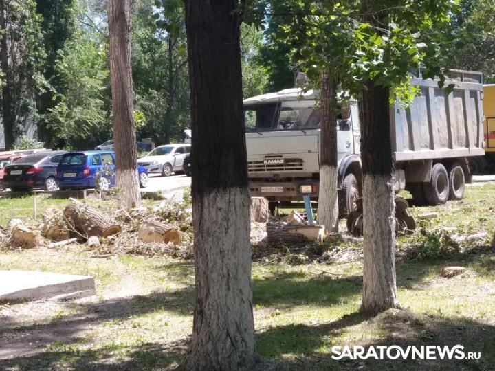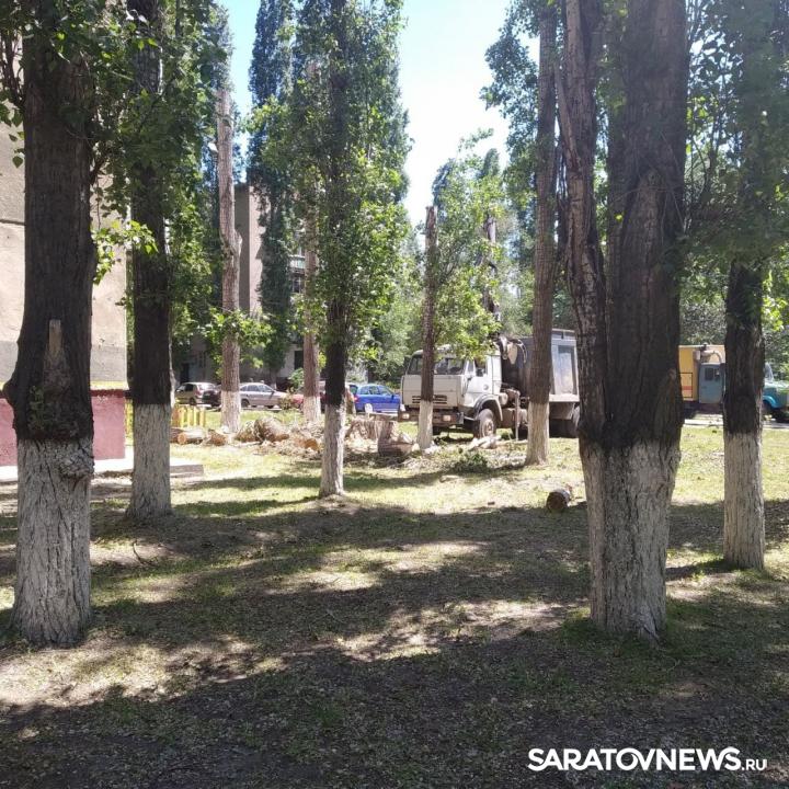 В Заводском районе Саратова продолжается массовая опиловка деревьев. Так, за домом № 65 по Новоастраханскому шоссе жильцы заметили во дворе рабочих, складывающих остатки обрубленных деревьев в грузовик.