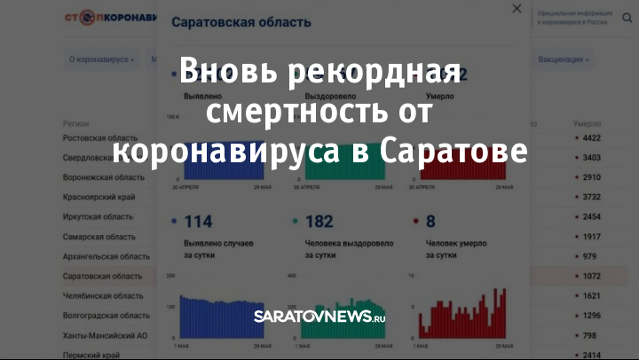Сегодня, 29 мая, опершиаб опубликовал последние данные по смертности от коронавируса в Саратовской области.