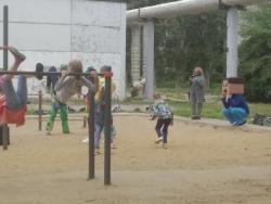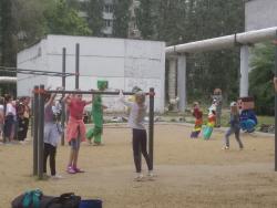 Из школьных дворов доносится современная музыка. Для детей устроены праздничные старты, конкурсы. Детскую программу ведут аниматоры, переодетые в популярных героев.