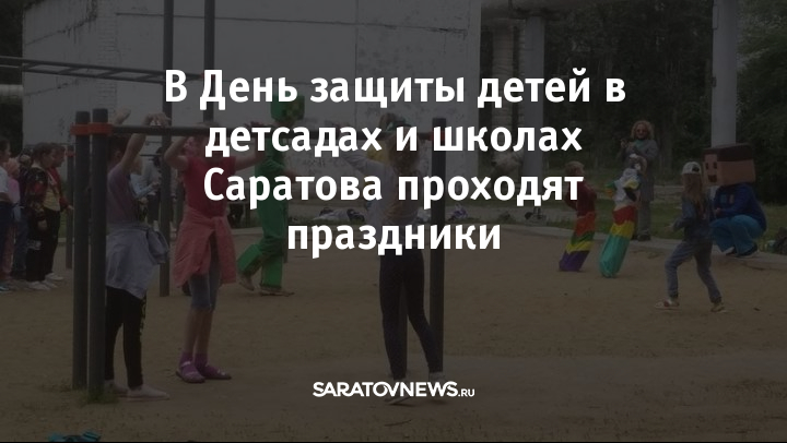 Сегодня, 1 июня, в День защиты детей в школах и детских садах Саратова полным ходом идут праздники. Несмотря на прохладную и пасмурную погоду, мероприятия организованы на свежем воздухе, где детям можно вдоволь побегать и попрыгать. В детских садах звучат песни из мультфильмов. Детей встречают на крыльце веселые герои сказок, поздравляют и дарят сладости.