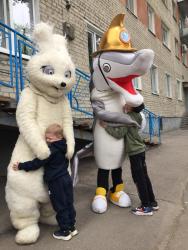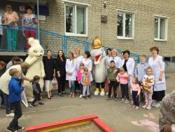 Волонтеры Фонда «Оберегая сердца» поздравили детей с помощью ростовых кукол и вручили им подарки.