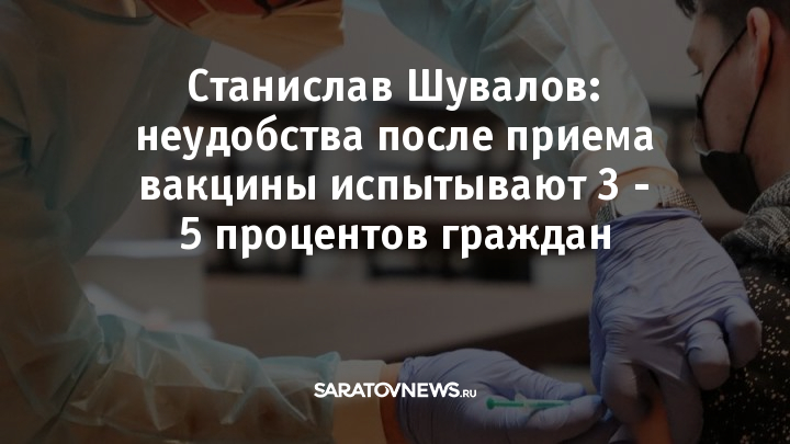«Есть 3 – 5 процента лиц, которые имеют какие-либо проявления и беспокойства после вакцинации. Например, боль в месте укола, покраснение, лихорадку, зуд. Как правило эти симптомы проходят без вмешательства медиков», - сообщил Станислав Шувалов.