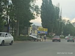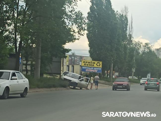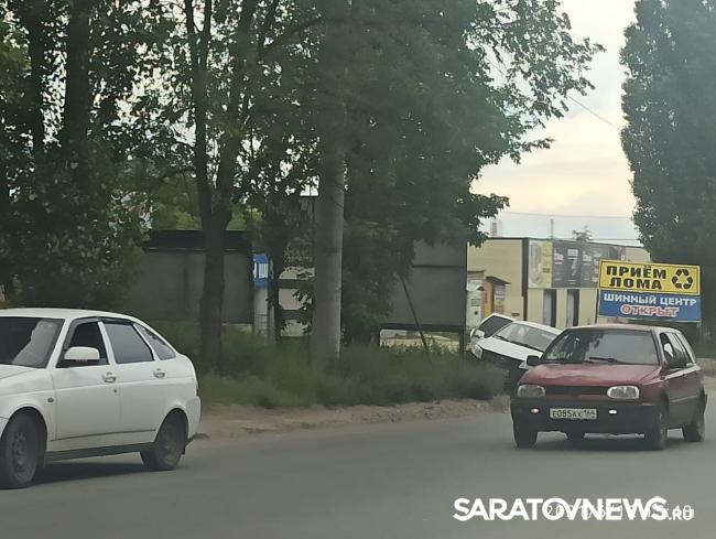 Сегодня, 12 июня, на Сокурском тракте в Ленинском районе Саратова произошло ДТП. Автомобиль «Лада» уходил от столкновения с «ВАЗом» двенадцатой модели и врезался в рекламный щит. Авария произошла прямо перед переездом. Машина, накренившись, стоит на газоне. Об этом рассказали очевидцы событий.