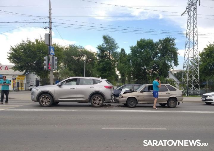 Около сквера Марины Расковой в Заводском районе сегодня вечером, 12 июня, случилось ДТП. Прямо на пешеходном переходе по Ново-Астраханскому шоссе «Лада» врезалась в китайский кроссовер Haval. У отечественного авто сильно повредилась передняя часть. В результате удара смялся бампер и капот, на дороге валяются осколки фар. О происшествии рассказали свидетели событий.