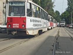 В результате аварии оказалось парализовано движение трамваев № 9 и 10. Около места происшествия встали уже порядка семи составов.