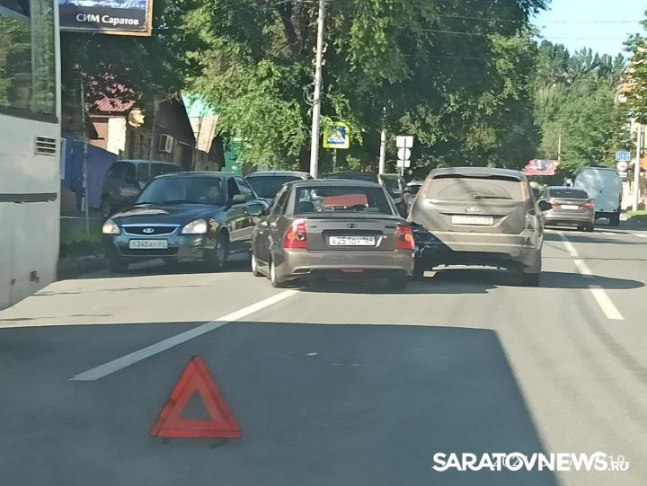 В Волжском районе Саратова сегодня вечером, 17 июня, произошла авария. На улице Мясницкой, в сторону Соколовой горы, столкнулись автомобили «Лада Приора» и Ford.