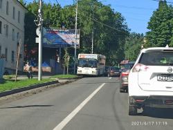 В результате удара «Лада» вылетела на «встречку», перегородив тем самым движение транспорта. Автомобили и автобусы вынуждены объезжать место ДТП по тротуару или траве. Вверх по улице собралась жуткая пробка, описывают ситуацию водители.