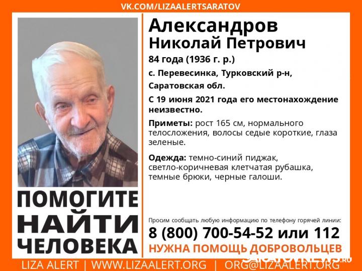 Пропал 84-летний Николай Александров. Дата его пропажи: 19 июня 2021 года. Рост пропавшего составляет 165 сантиметров, он нормального телосложения, волосы имеет седые и короткие, зеленые глаза. В день исчезновения на нем были темно-синий пиджак, светло-коричневая клетчатая рубашка, темные брюки и черные галоши.