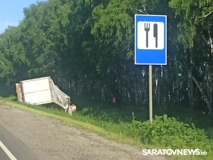 Сегодня, 21 июня, на трассе "Саратов — Балашов" произошло ДТП. В 15 километрах от Калининска перевернулась фура.