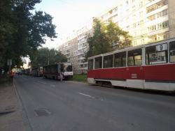 На улице Огородной затруднилось движение. Но за участниками аварии выстроилась не только вереница машин. Peugeot стоит настолько вплотную к рельсам, что на путях постепенно встали 11 трамваев. На месте работает ГИБДД. Пострадавших не замечено, рассказывают горожане.
