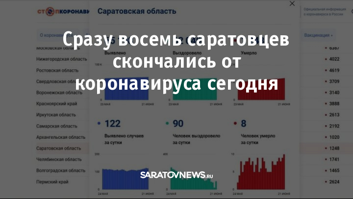 Сегодня, 22 июня, оперштаб опубликовал последние данные по смертности от коронавируса в Саратовской области.