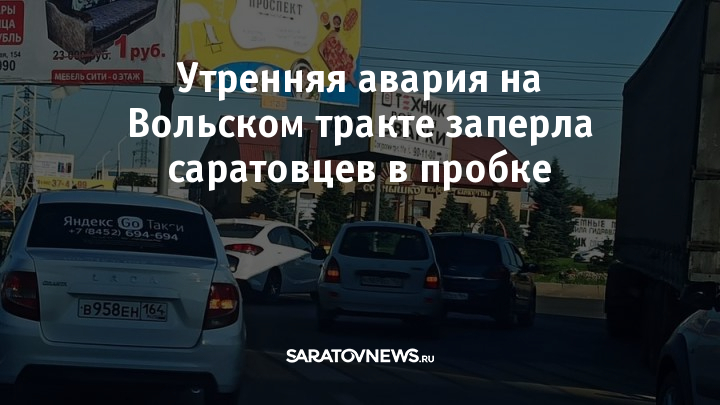 Сегодня, 22 июня, на Вольском тракте в Саратове произошла авария, из-за которой возникли серьезные трудности с движением.