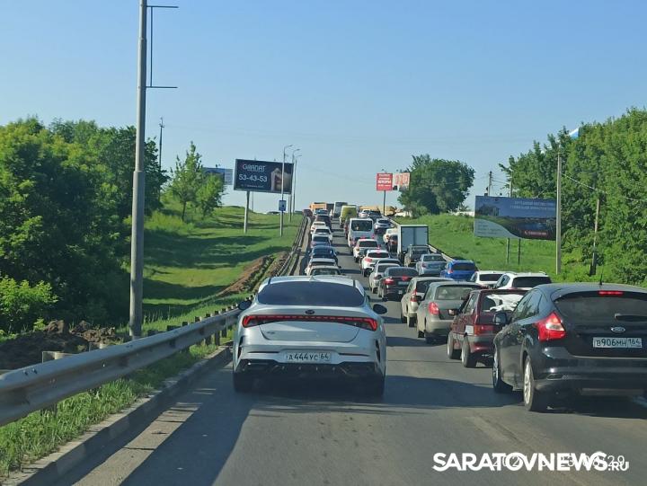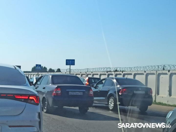 Сегодня утром, 23 июня, в Юбилейном поселке Саратова произошла двойная авария, из-за которой возникли большие затруднения движения.