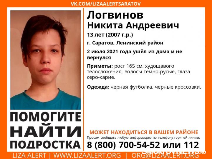 Вчера, 2 июля, волонтеры саратовского отделения «Лиза Алерт» рассказали о том, что в Ленинском районе областного центра пропал 13-летнийц мальчик.
