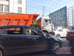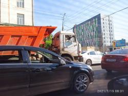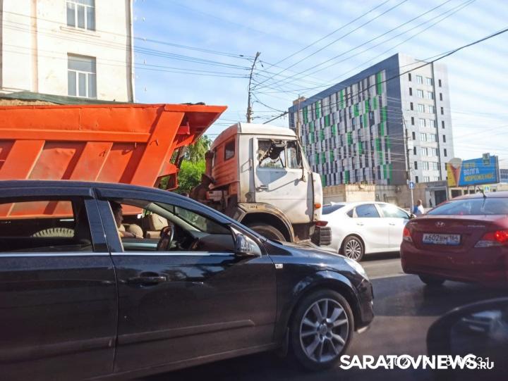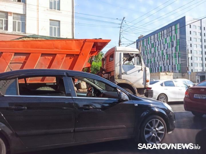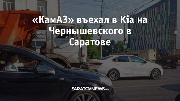 Сегодня, 15 июля, в Волжском районе Саратова произошла дорожная авария. На пересечении улиц Чернышевского и Дегтярной, в сторону центра, «КамАЗ» въехал в Kia. Автомобили заняли левую сторону дороги. И, таким образом, осложнился поворот на Дегтярную.
