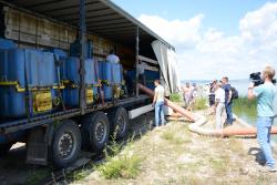 Мероприятие проходило под патронажем Балаковской атомной станции. Собственно, и выращены мальки были по инициативе атомщиков. Живые представители герба Саратовской области родом из Саратовского рыбопитомника. Первое в своей жизни путешествие – в поселок Духовницкое – они совершили на специальном транспорте, оборудованном всем необходимым для жизнеобеспечения малышей. Так, например, во время переезда вода в контейнерах поддерживалась определенной температуры и постоянно насыщалась кислородом.