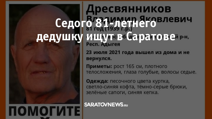 Сегодня, 2 августа, волонтеры саратовского отделения «Лиза Алерт» вновь обратились к жителям региона с просьбой поучаствовать в поисках пенсионера, который может находиться на территории региона. Об этом сообщается на странице активистов в социальной сети.