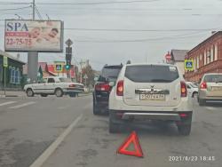 Сегодня вечером, 23 августа, в Кировском районе Саратова произошло ДТП. На пересечении улиц Симбирская и Большое Горная столкнулись кроссовер Renault Duster и Ssang Yong. В результате происшествия машины заняли левую полосу дороги. Образовалась пробка.