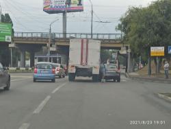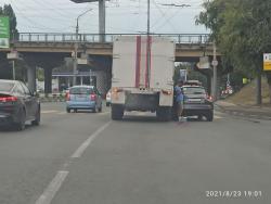 Машины остановились у пешеходного перехода, закрыв правую часть дороги. Движение транспорта в месте ДТП затруднено. Участники аварии ждут приезда сотрудников ГИБДД.