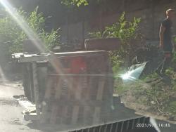 Несколько минут назад на улице Мичурина произошла авария с погрузчиком. Со слов очевидца, бобкэт выполнял работы на уклоне и случайно перевернулся.