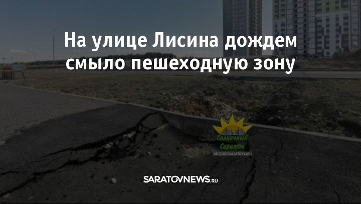 Вчера, 12 сентября, в сообществе «Солнечный Саратов» жители города пожаловались на разрушенную пешеходную зону на новой аллее по улице Лисина. По сообщению местной жительницы, после первого осеннего дождя дорогу размыло.