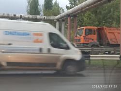 "КамАЗ" врезался в две иномарки, за рулем которых были женщины. Машины оказались практически прижаты к ограждению на дороге. По словам очевидцев, женщины не пострадали, они осматривают место происшествия и ждут сотрудников ГИБДД.