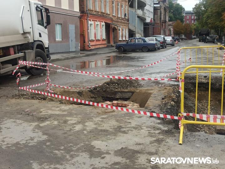 Теперь саратовские водители, поворачивающие с Вольской на Дзержинского, оказываются в плену: справа – разрытая яма, слева – застрявший мусоровоз, да и к тому же на Дзержинского одностороннее движение.