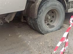 На улице Дзержинского во Фрунзенском районе Саратова с пяти часов утра стоит мусоровоз. На этой улице велись коммунальные работы, часть дороги разрыта, часть была засыпана, но, как оказалось, ненадежно.