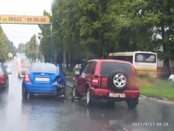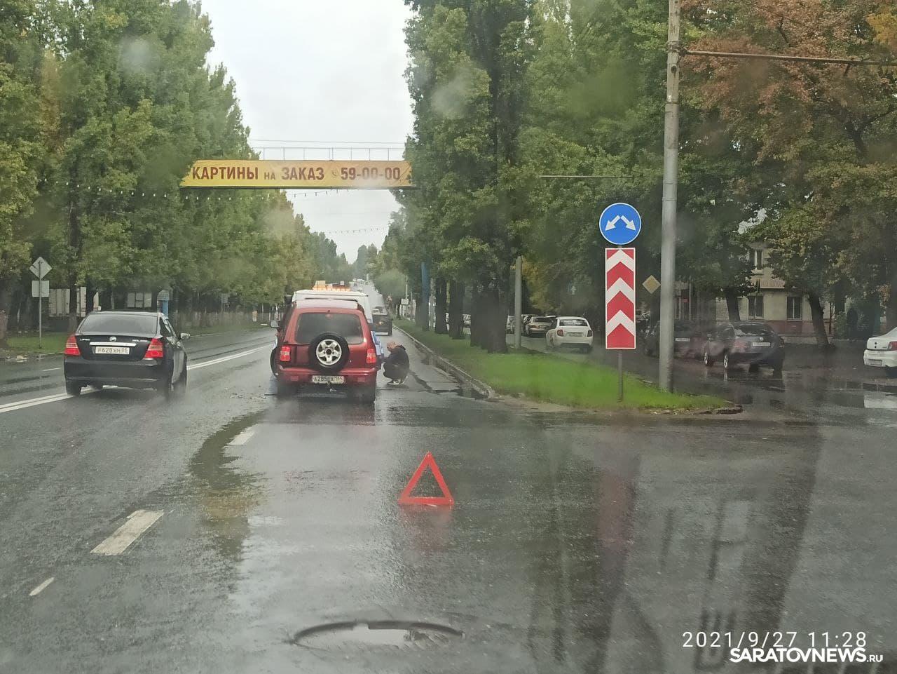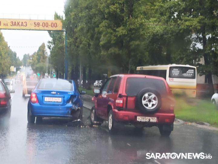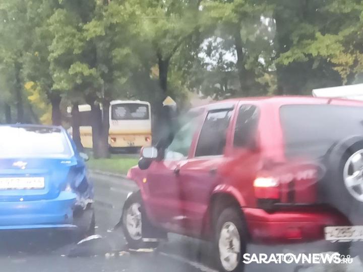 Сегодня утром, 27 сентября, в Ленинском районе Саратова произошла тройная авария. Машины столкнулись на проспекте Строителей у кольца НИИ. У автомобиля Chevrolet в результате удара сильно смялась задняя часть кузова справа, обломки лежат на проезжей части. У "Нивы" поврежден кузов слева спереди. Об этом сообщили очевидцы происшествия. Они также сообщили, что "Нива" не смогла уехать своим ходом с места происшествия, автомобиль эвакуировали.