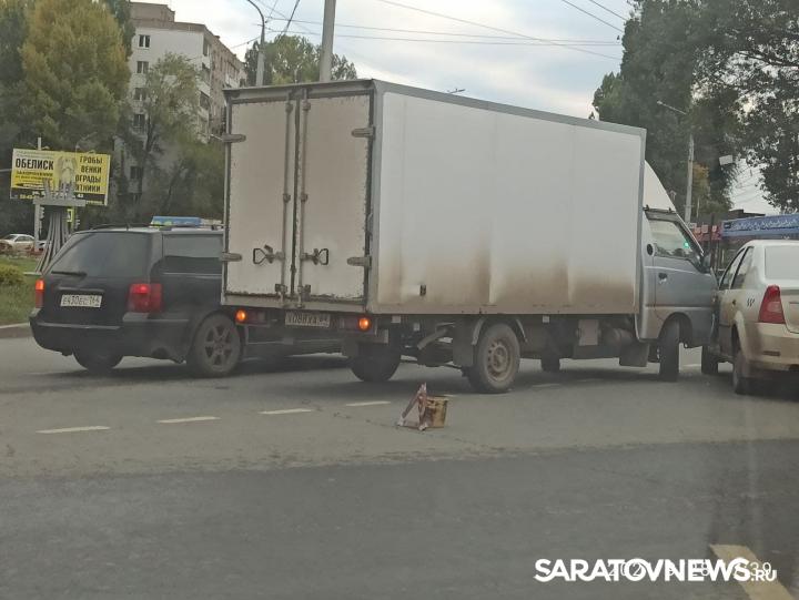 Сегодня, 28 сентября, на улице Шехурдина в Саратове произошла авария. На кольце НИИ столкнулись микроавтобус и Renault Logan, принадлежащий «Яндекс Такси».