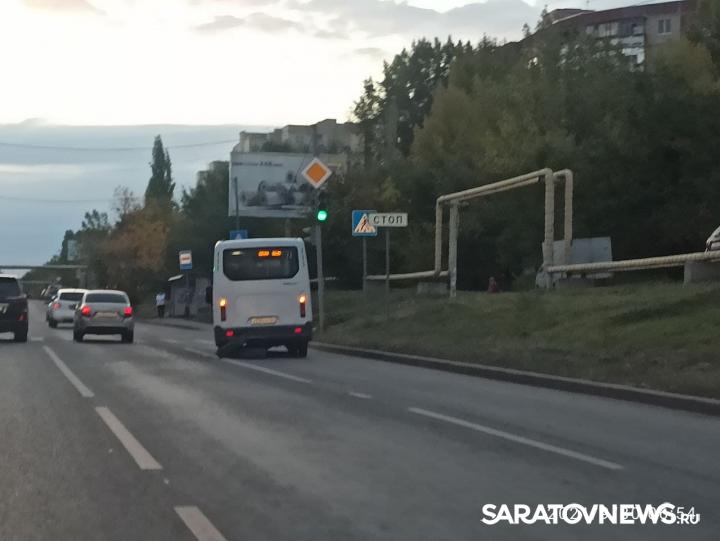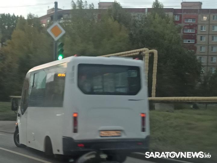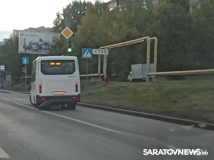 В результате ДТП маршрутка стоит на проезжей части. Левую заднюю часть кузова автобуса подпирают два колеса. В это утреннее время на обычно оживленной улице еще не было пробок, отмечают саратовцы.