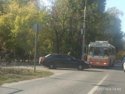 Полчаса назад в Саратове на улице Астраханской автомобиль Datsun столкнулся с троллейбусом маршрута 3. Авария случилась на узком участке дороги, из-за чего другим машинам и общественному транспорту приходится её объезжать по встречной полосе.