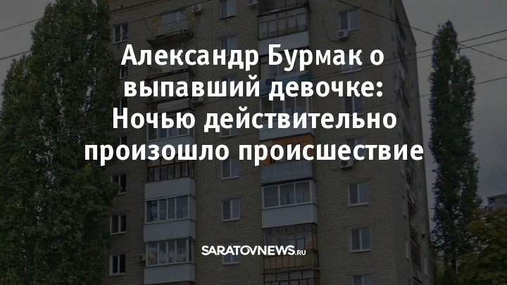 Сегодня утром стало известно о трагическом случае, произошедшем ночью в Ленинском районе Саратова. Из окна девятиэтажки выпала 11-летняя девочка-подросток. Заместитель главы администрации Саратова по социальной сфере Александр Бурмак прокомментировал печальный инцидент: