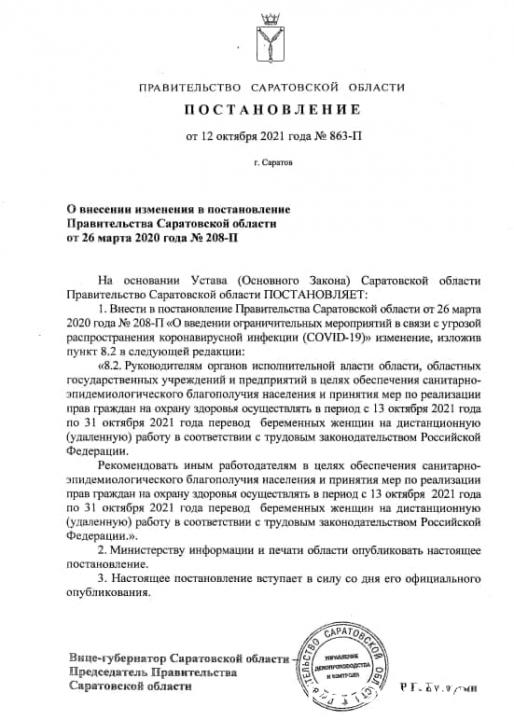 В Саратовской области продлили период нахождения беременных на удаленной работе с 13 по 30 октября. Об этом сообщает Telegram-канал Романа Бусаргина.