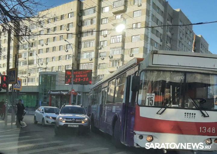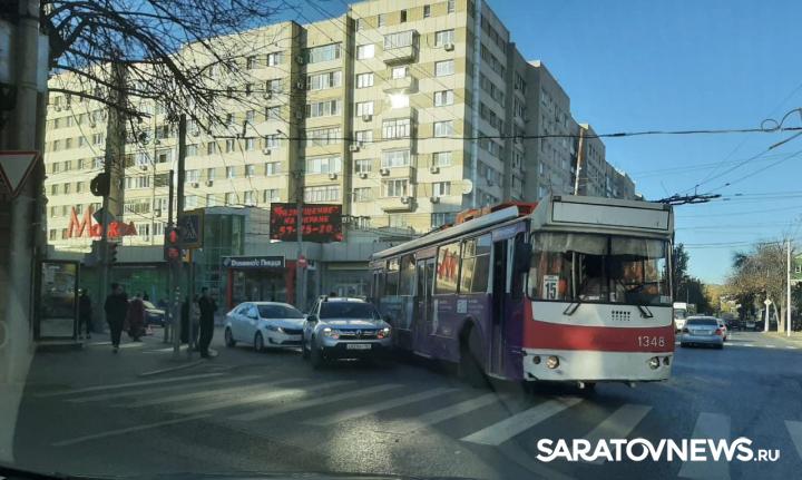 В эти минуты улица Московская в Саратове встала в длинной пробке, образовавшейся в результате аварии.
